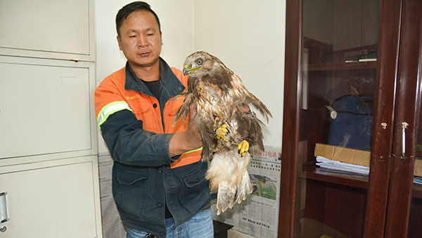 两人见状,立即对“幼鹰”展开施救。随后在驻矿派出所民警的协助下将“幼鹰”护送至玛沁县自然资源局,经确认,该“幼鹰”为国家一级重点保护动物、濒危鸟类金雕。目前,当地野生动物保护站已经对金雕进行了救治,待其痊愈后即可放归自然。