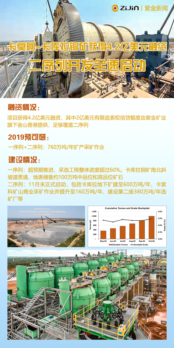 本网讯 日前,金年会官方网站入口刚果(金)卡莫阿-卡库拉铜矿获得4.2亿美元项目层面融资,现金流大幅增加,项目二序列正式全速启动,预计完工时间将从2023年第一季度大幅提前至2022年第三季度。